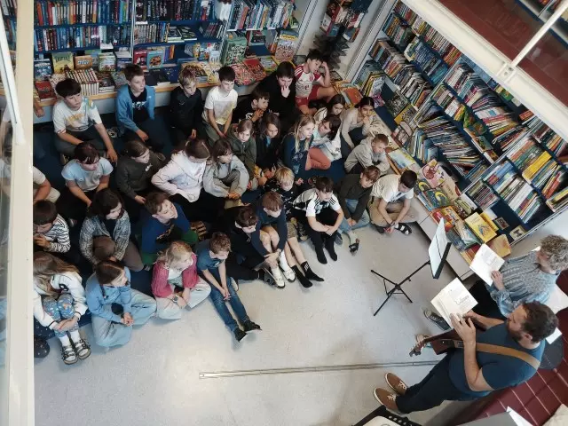 V okviru Andersenovega dneva smo obiskali posebno branje v Mohorjevi knjigarni. Pisatelj Mathias Krispin Bucher je predstavil svojo knjigo »Poglej, Malou«.
